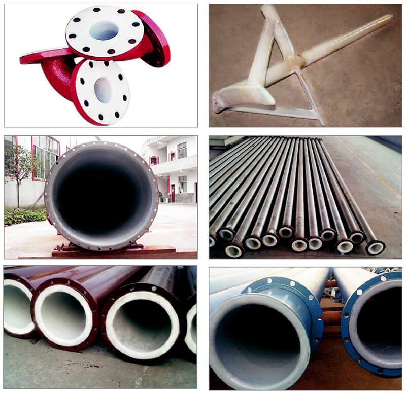 公司PE(PO)襯里采用的原材料是進(jìn)口粉末狀的線性低密度聚乙烯(LLDPE),它的加工方法為旋轉(zhuǎn)成型,工件(鋼制容器或管道)在旋轉(zhuǎn)的過程中加熱,粉狀樹脂的工作表面吸熱熔融,旋轉(zhuǎn)一次便粘上一層粉狀樹脂,隨即吸熱融化,最后加工至規(guī)格厚度后冷卻成型,所以它在工藝上保證了襯層無針孔、無泄漏、無任何焊縫。并且該工藝對(duì)工件的內(nèi)外結(jié)構(gòu)無要求,無論結(jié)構(gòu)如何復(fù)雜,均能加工成型。在工件較大,運(yùn)輸有困難的情況下還可以現(xiàn)場(chǎng)施工,使用溫度在100℃以內(nèi),在酸、堿、鹽等強(qiáng)腐蝕介質(zhì)中能長(zhǎng)期穩(wěn)定使用,廣泛用于冶金、化工、制藥、食品、環(huán)保、能源等行業(yè)中接觸腐蝕介質(zhì)的管道、槽、罐、塔、風(fēng)機(jī)、交換器、攪拌槳、閥門等。
